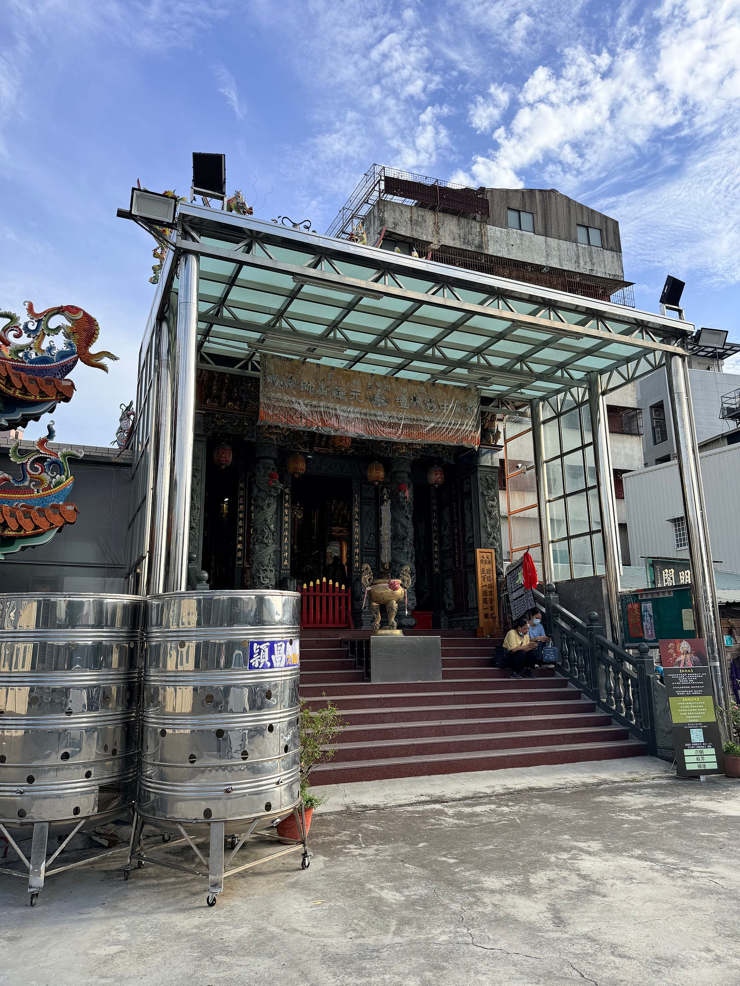 某天夜裡,第一次騎車去九六新村找慶安宮,其實沒有很難找,但我怎麼找都找不到。直到第二次白天再去時,我發現其實遠遠的就能看到廟頂,騎車進去也不難,就是搞不懂為什麼我第一次會找不到。