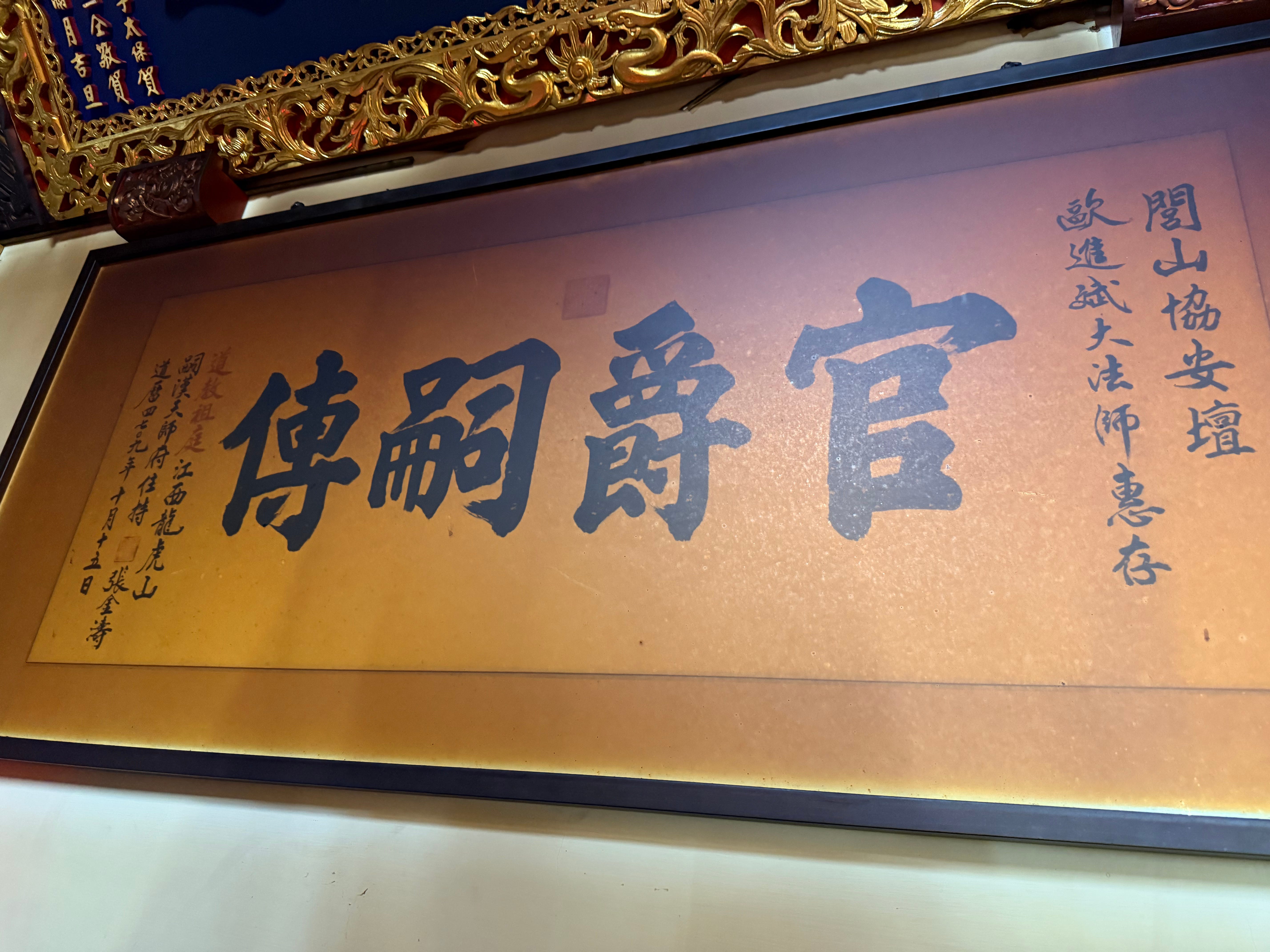 兩個月過去了,我停好機車,回頭一望,鐵捲門緩緩升起,映入眼簾的是一台轎車。『這裡是廟?』,等我走進去之後我才意識到『這是一間藏寶庫』。這裡其實就是一個高級社區裡的透天厝,但一樓的車庫被改建成神壇(但車還是停得進去),我先點香拜過祖師爺(徐甲真人)之後老師把我帶進他的辦公室,裡頭充斥著各種匾額跟符文、道書,由於老師還在處理事情,我就自己參觀了一下,架好攝影機跟別好麥克風,一坐下老師就一臉以逸待勞的等待我的提問。