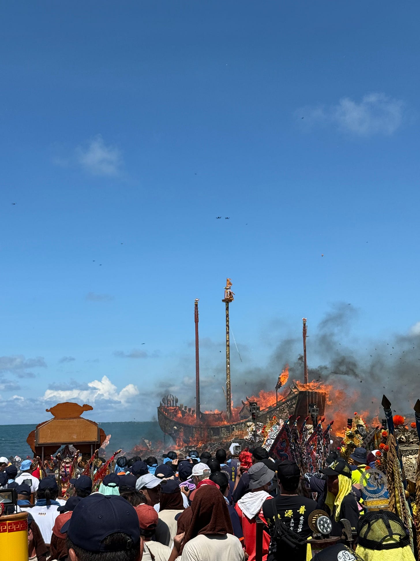 果不其然,隔日的送王船隊伍非常盛大,畢竟是一百八十年才一次的王船醮,各方贊境的宮廟都做好了萬全準備,所以也不會有什麼中午休息時間訪問這種事情。我與老師訊息聯絡說再約時間,然後就這樣又過了一個月,老師才在百忙之中回覆我,我們約好一個月後再進行訪問,時間是七點半。